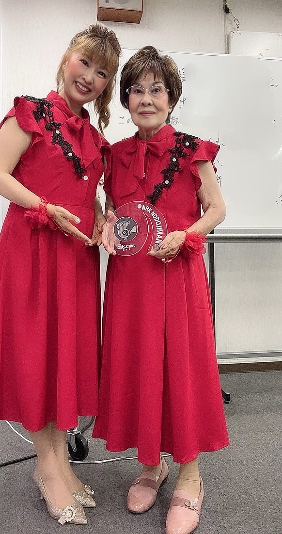 真っ赤な衣装は安子先生の手作りです。